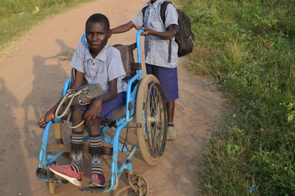 Nyadriku Derrick was born healthy — a son who sat up, crawled, pulled himself to standing, and made his mother proud at every turn. But when it came time to take his first steps, life had other plans. Severe anaemia swept through his tiny body, and what followed were years of hospitals, blood transfusions, and a mother who refused to give up. By the age of five, Derrick had survived 38 blood transfusions. Physiotherapy sessions came and went, but a waist joint problem left him unable to walk. He has been in a wheelchair ever since.